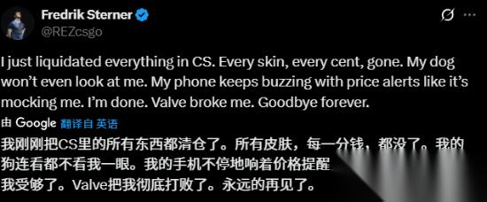 多位職業(yè)選手也在社交媒體上發(fā)聲,對此次更新表達(dá)不滿。GamerLegion戰(zhàn)隊選手REZ發(fā)文稱:“我剛剛清空了CS里的所有庫存。所有皮膚、所有錢,全都沒了。我的狗都不理我,手機的價格提醒聲像是在嘲笑我。Valve,這次你贏了。再見了,永遠(yuǎn)的CS2?!?/p>